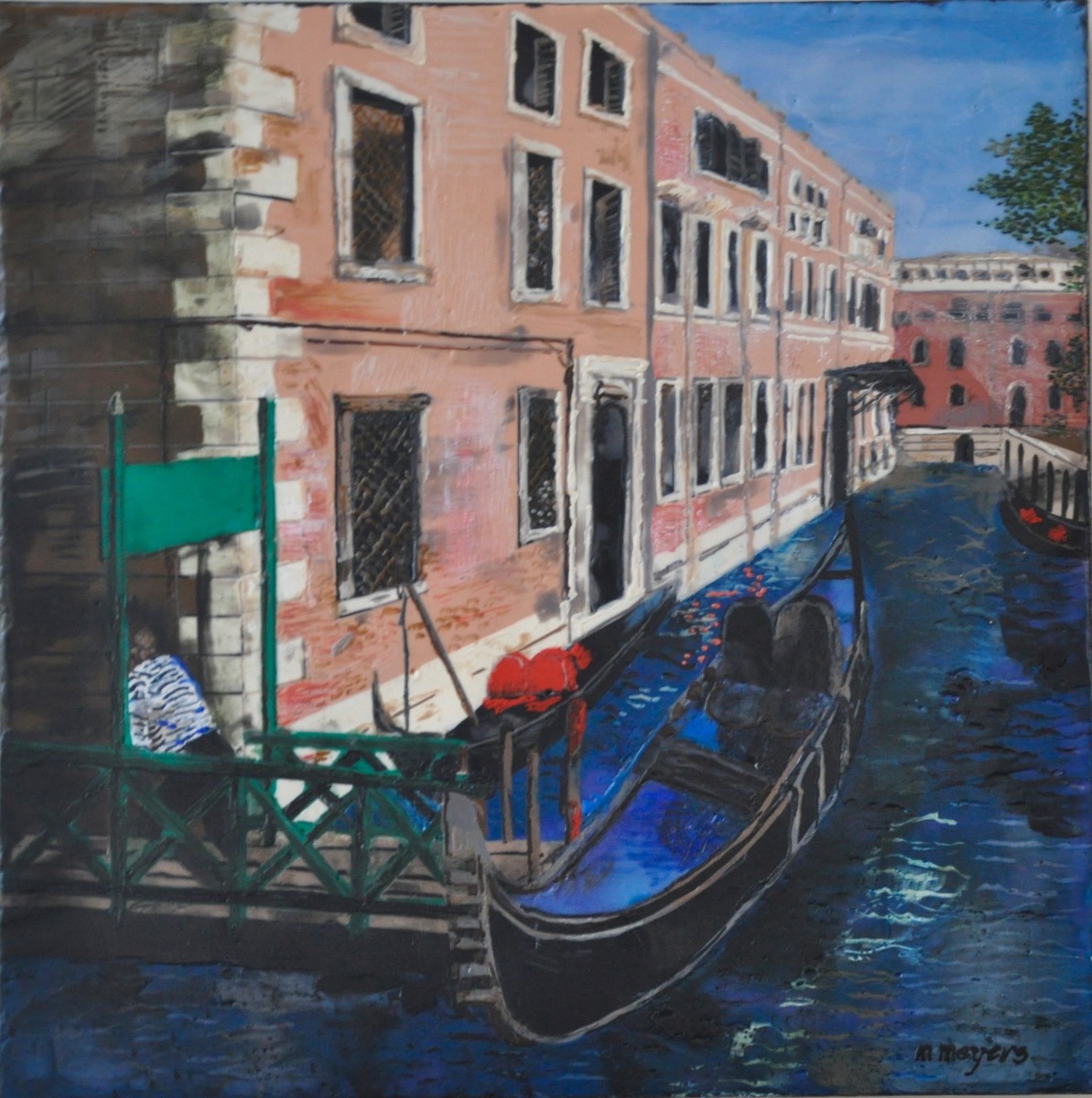 Canali di Venezia, encasutic on birch panel, 16" x 16", Marion Meyers, 2016